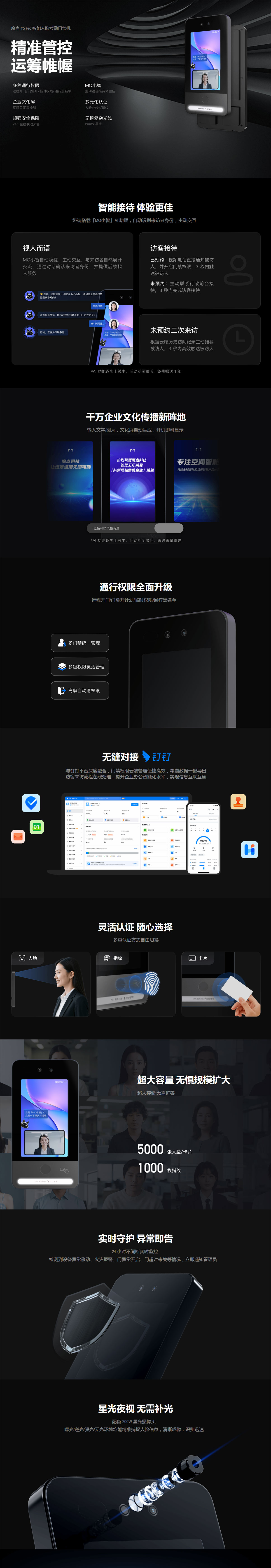 多模态认证:人脸(0.3秒识别/99.99%金融级精度)、指纹、卡片三重验证 安全保障:双摄像头(红外+RGB)适应复杂光……